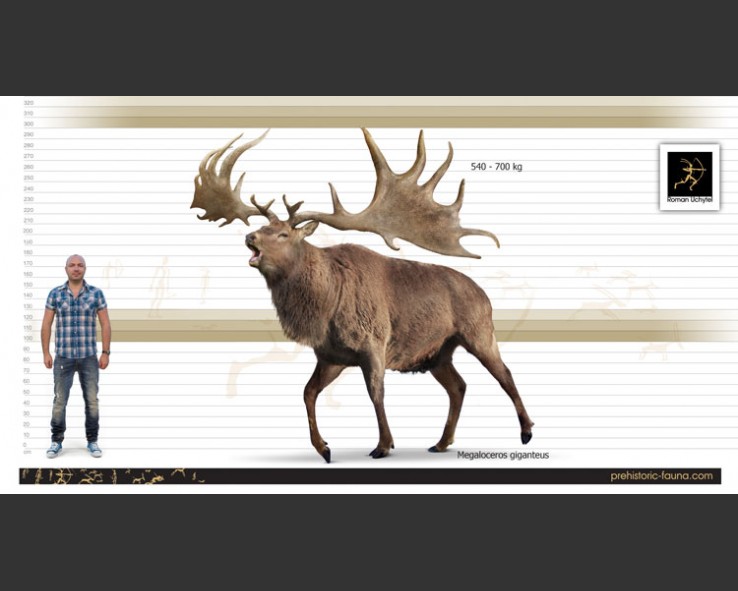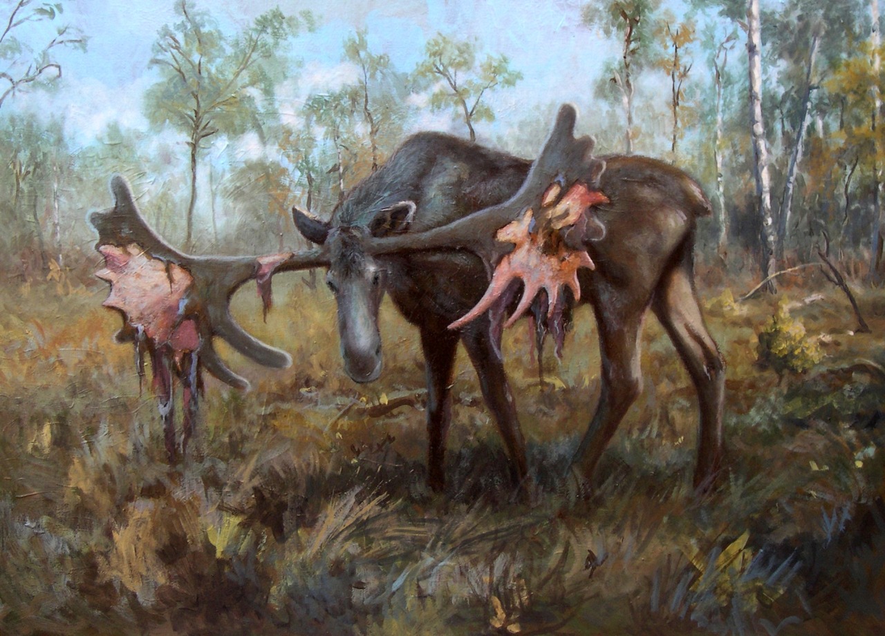 | Nope, the biggest deer was actually the Broad-Fronted Moose, Cervalces latifrons, that was driven extinct by Pleistocene humans. Lovely image from Emiliano Troco. |