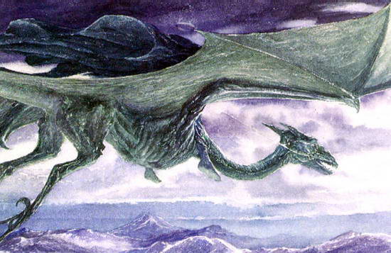 "Pterodactyl. Yes and no. I did not intend the steed of the Witch-King to be what is now called a 'pterodactyl', and often is drawn (with rather less shadowy evidence than lies behind many monsters of the new and fascinating semi-scientific mythology of the 'Prehistoric'). But obviously it is pterodactylic and owes much to the new mythology, and its description even provides a sort of way in which it could be a last survivor of older geological eras."